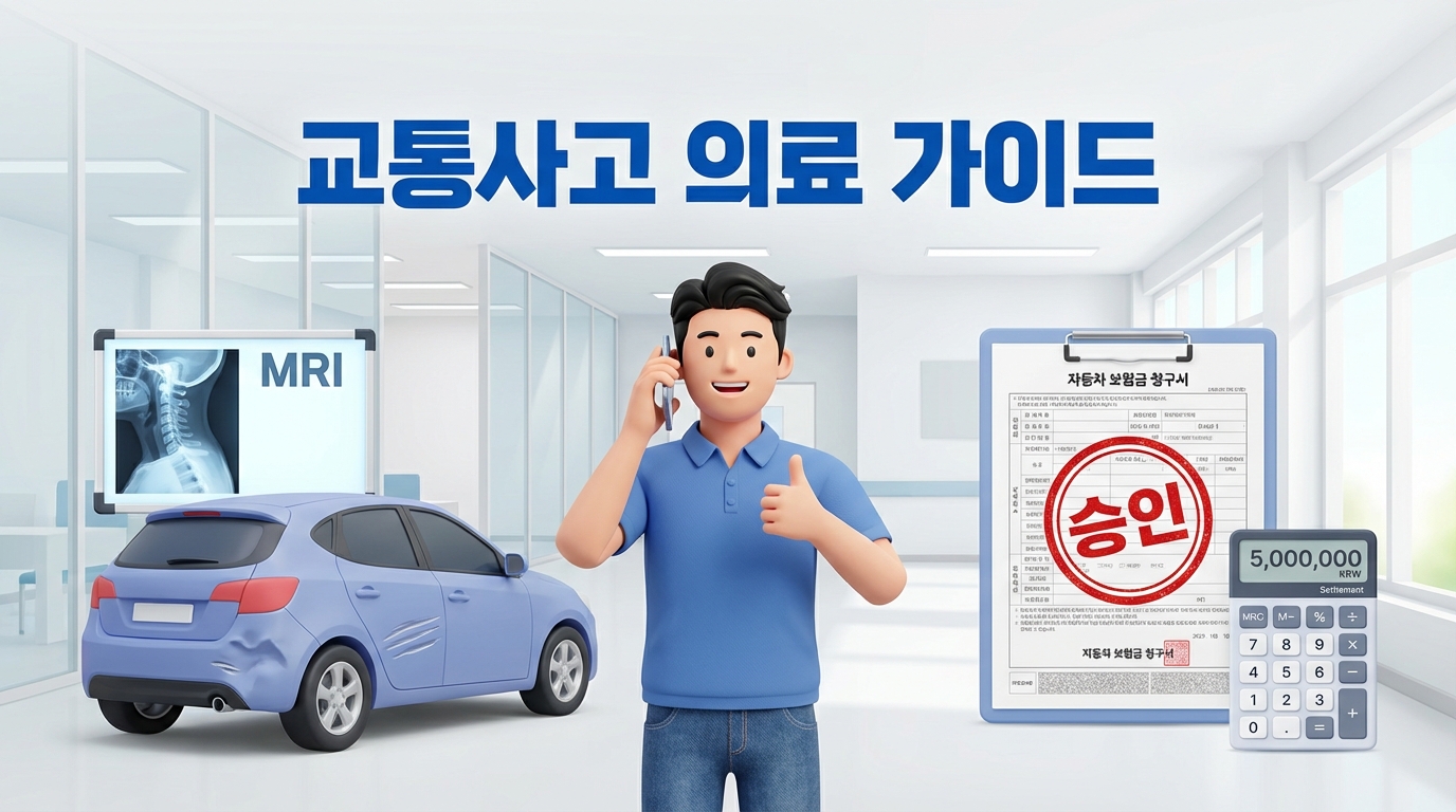 "사고 났는데 MRI 찍어도 되나요?" 😰 병원비 걱정에 검사를 미루다간 후유증은 남고 합의금은 깎입니다! MRI 촬영 골든타임부터 한방병원 입원비 전액 지원받는 법, 그리고 과실 비율이 있어도 내 돈 안 내는 꿀팁까지. 교통사고 환자가 꼭 알아야 할 병원비 방어 전략을 싹 다 정리해 드릴게요! 🏥💰