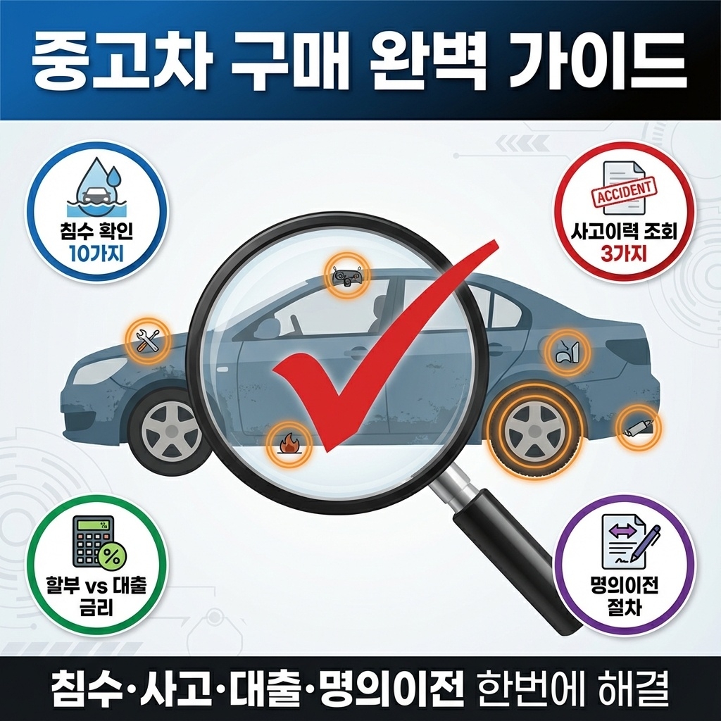 이 글에서는 중고차 구매의 모든 과정을 단계별로 상세히 다룰 거예요. 침수차 확인법부터 사고이력 조회, 금융 옵션 비교, 명의이전 절차까지 실전에서 바로 적용할 수 있는 구체적인 정보를 제공할게요. 내가 생각했을 때 중고차 구매는 정보 싸움이에요. 충분히 알고 준비하면 좋은 차를 합리적인 가격에 구매할 수 있답니다. 지금부터 중고차 구매의 모든 것을 함께 알아볼까요? 🚘
