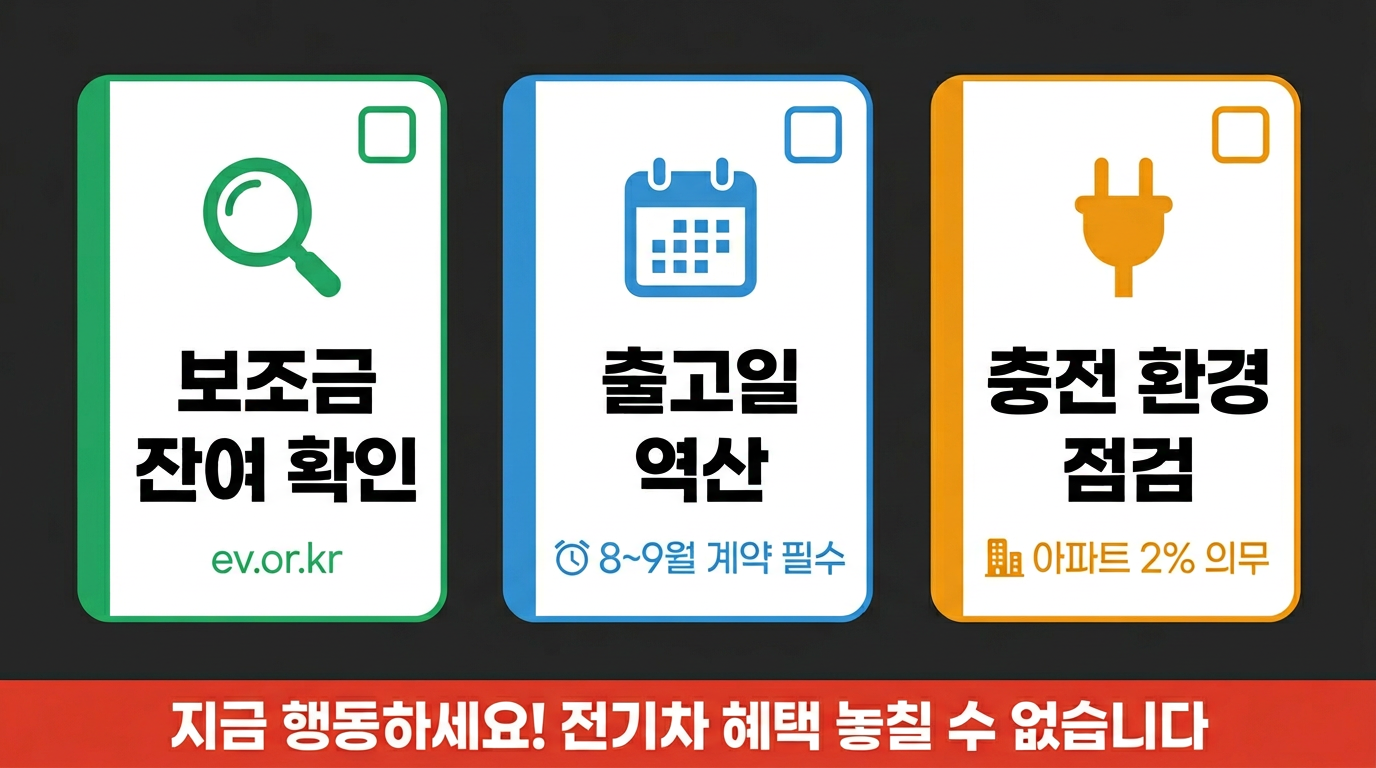 반면 위기 신호도 뚜렷합니다. 2026년 4월 8일 현재, 주요 지자체 보조금 소진율이 90 %를 돌파했으며, 대구·광주·남양주·서산·여수·포항 등은 잔여율 20 % 미만으로 사실상 상반기 마감이 임박했습니다. 서울은 잔여 약 6,395대(72 %), 예상 마감 시점은 9~10월이지만 고유가 국면이 지속되면 앞당겨질 가능성이 큽니다. 보조금이 있을 때 사야 진짜 '할인'인 이유가 여기에 있습니다.