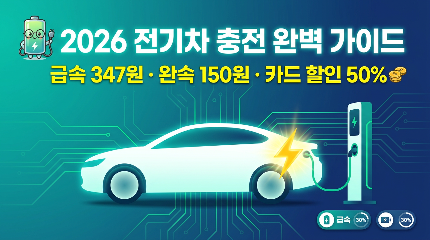 결국 "어디서, 언제, 어떻게 충전하느냐"가 전기차 유지비를 결정짓는 핵심 변수입니다. 이 글에서는 2026년 4월 기준 사업자별 충전요금 비교, 충전 방식(가정 완속·공공 완속·급속)별 장단점, 할인 카드 TOP 4 비교, 가정용 충전기 설치 비용과 보조금, 아파트 의무 설치 규정, 커넥터 규격, 심야 요금 절약법까지 숫자 중심으로 정리합니다.