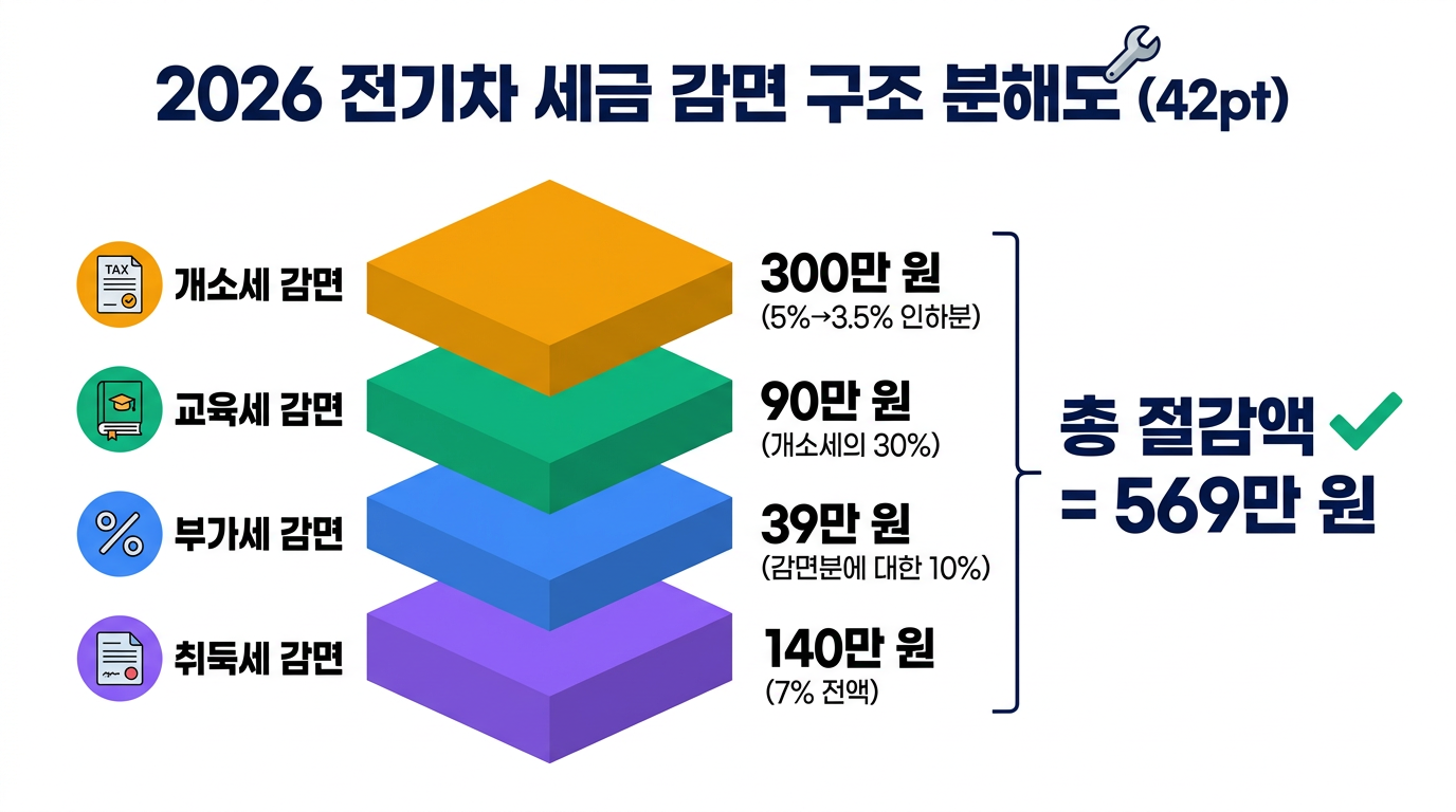 2. 전기차 세금 감면 구조 — 569만 원의 구성
