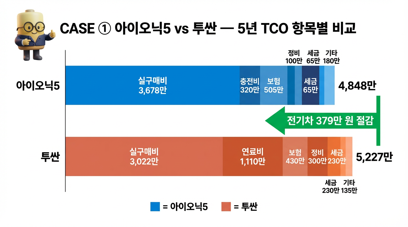3. CASE ① 중형 — 아이오닉5 vs 투싼 (가솔린)