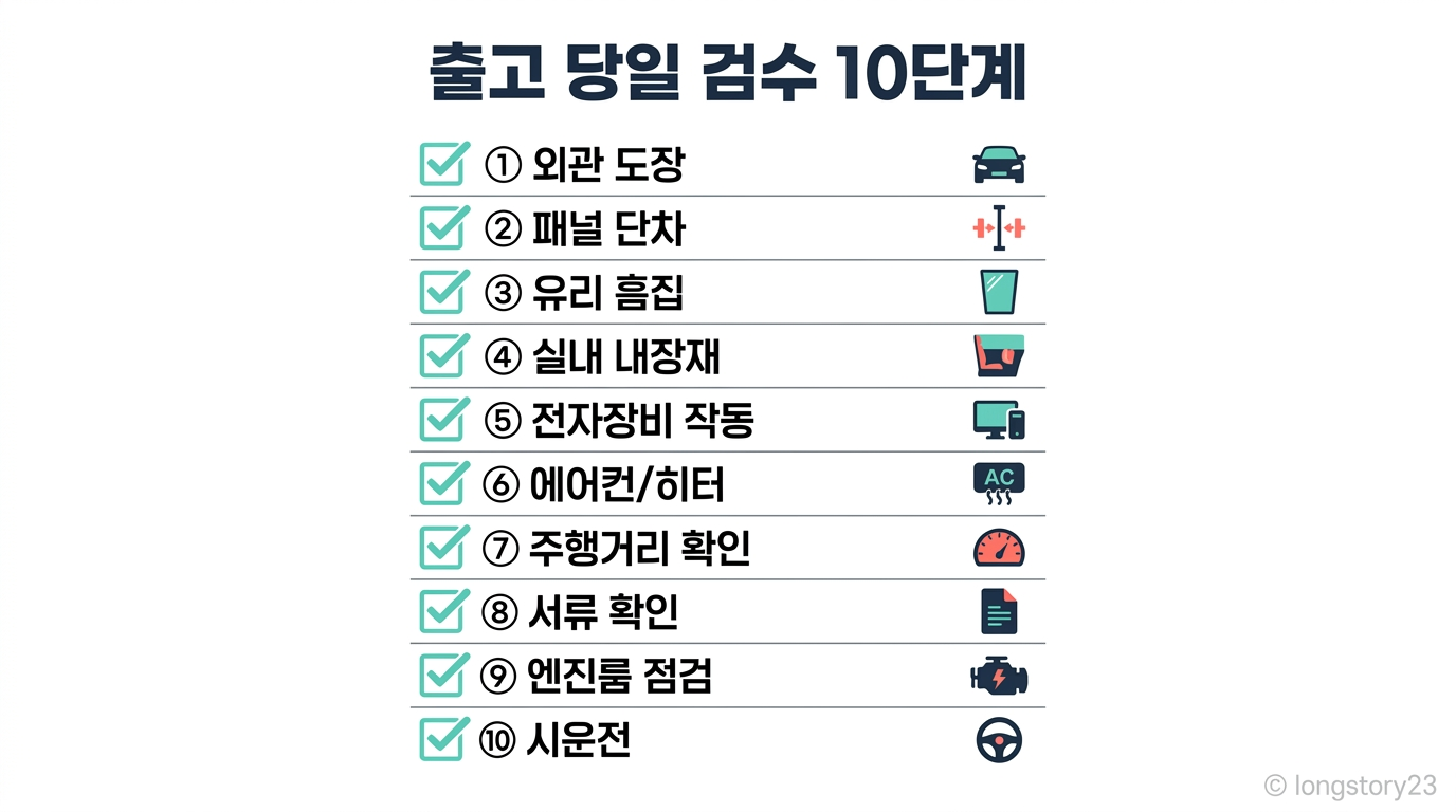1. 출고 당일 — 신차 검수 10단계 체크리스트
