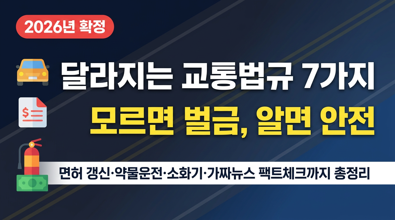 이 글에서는 2026년 실제로 달라지는 교통법규 7가지를 정확한 시행일과 함께 정리하고, 온라인에 퍼진 가짜뉴스 3가지를 팩트체크합니다.